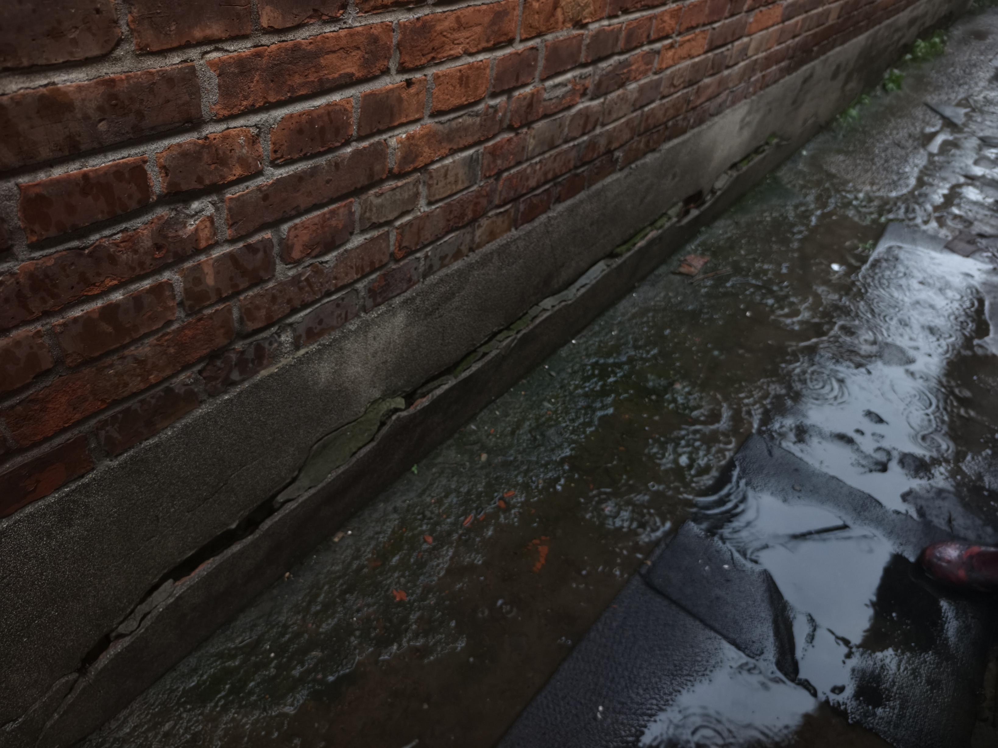 记者涉水参加大柳树电源厂寝室,只见平房区里多位居民都衣服雨鞋,一位居民告诉记者这委果是家家必备用品,一到下大雨,平房区就积水,巨匠照旧民俗蹚水回家。东西两侧平房之间有一条一米多宽的小径,路面已有积水。李女士告诉记者,平房区北侧有一皆墙,积水无法向北排出去;南侧天然有一条排水沟,但王四营路也有积水,导致排水不畅,平房区这条小径的积水就会愈加严重,“10分钟不抽排,雨水就会倒灌进屋里。” 记者肃肃到,好多居民家门前都垫起砖头和木板等,有的用水泥抹出坡面,防患雨水倒灌进屋。西侧两排房屋底部可见显明的深色水渍,大门底部也留有水印,高度约20厘米。一户居民家外墙底部照旧显明开裂。